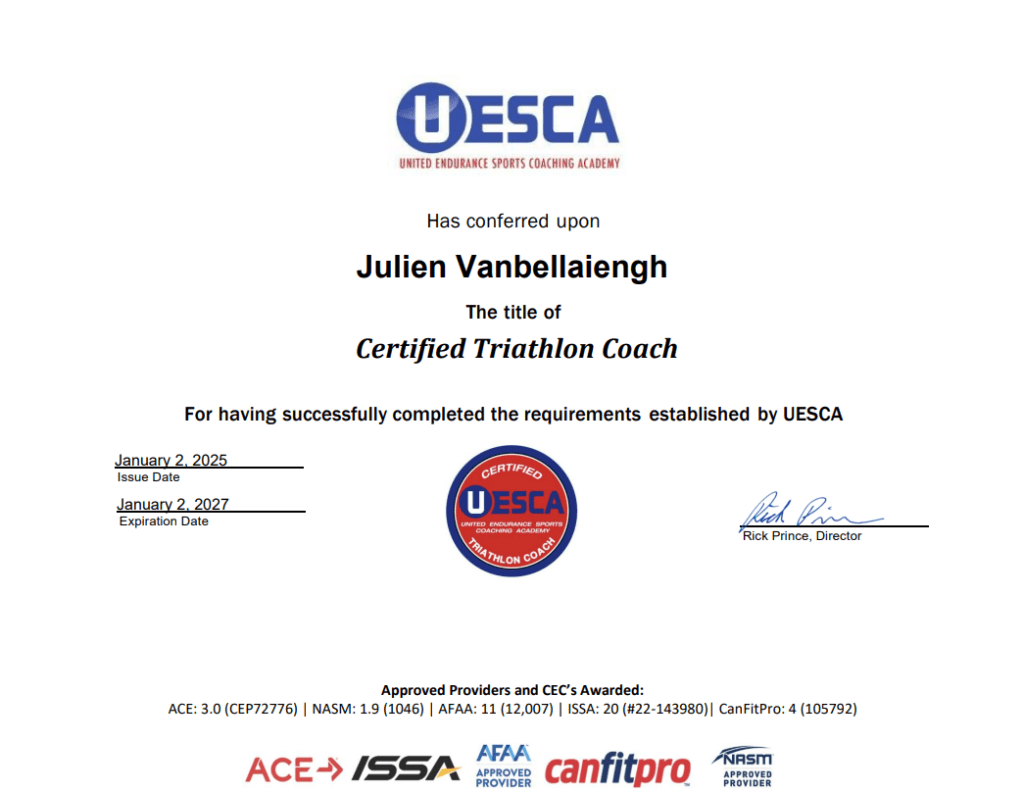 Je m’appelle Julien Vanbellaiengh, coach passionné par la course à pied, le triathlon et la nutrition. Mon objectif est d’accompagner des sportifs de tous niveaux à transformer leurs ambitions en réussites, qu’il s’agisse de découvrir une nouvelle discipline, de progresser pas à pas, ou de repousser leurs limites pour atteindre des performances inégalées.